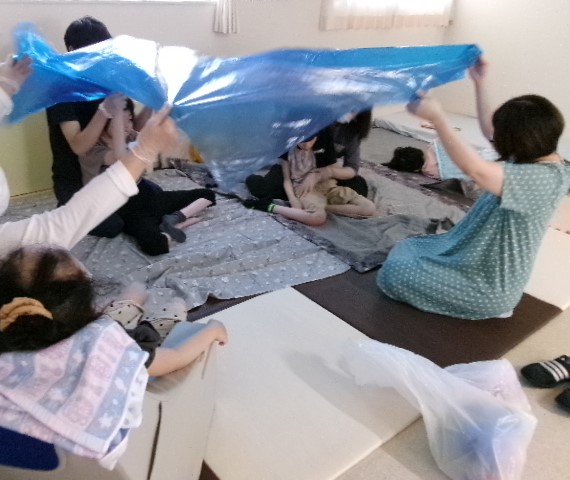 バルーンは青いビニールで、海バージョンにして遊びました。