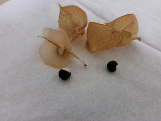 赤茶色になって熟した実を開けてみると…。可愛い種が収穫出来ました!