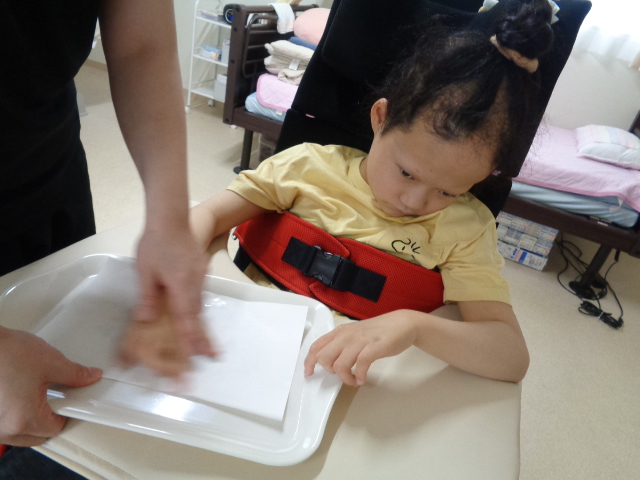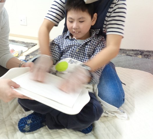 画用紙を乗せ、手でなでなで…。