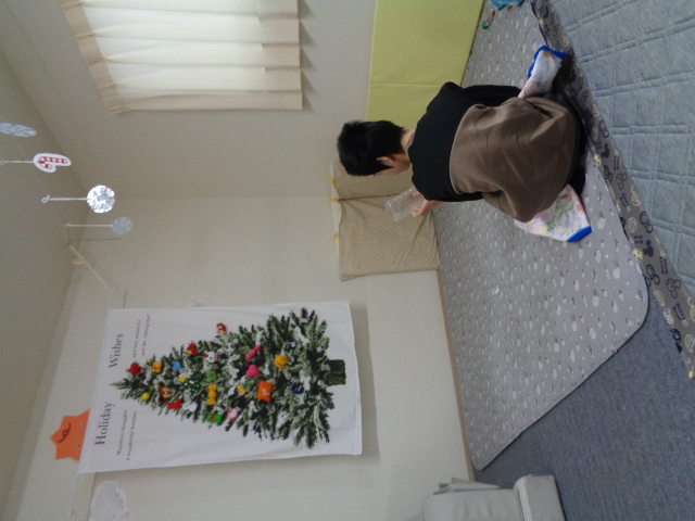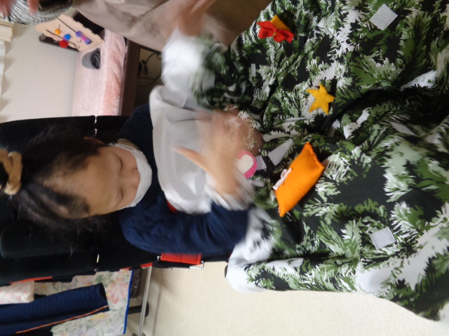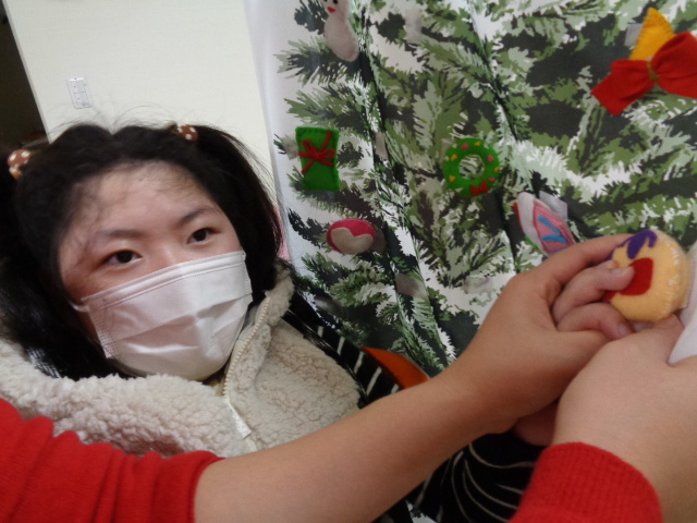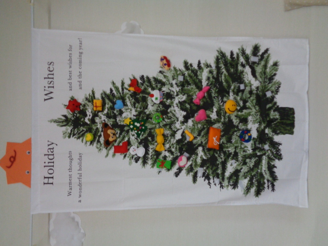 ペタリとくっついた飾りを見て皆さんにっこり。皆で協力して素敵なツリーが完成しました![]()