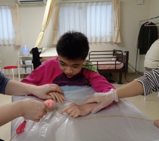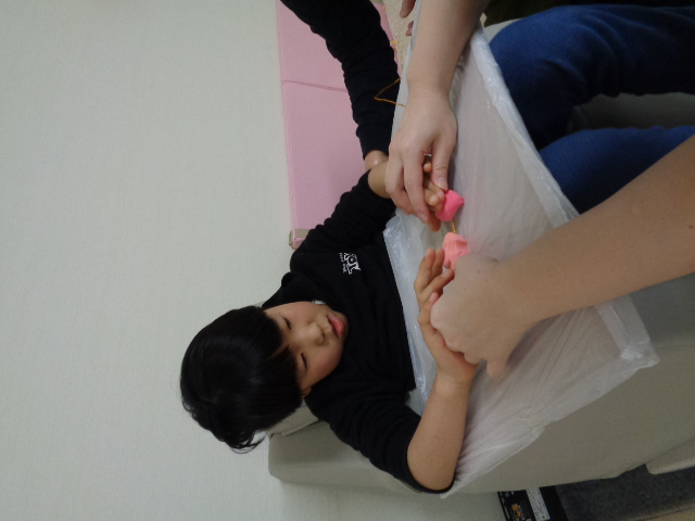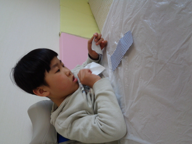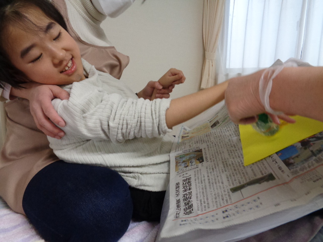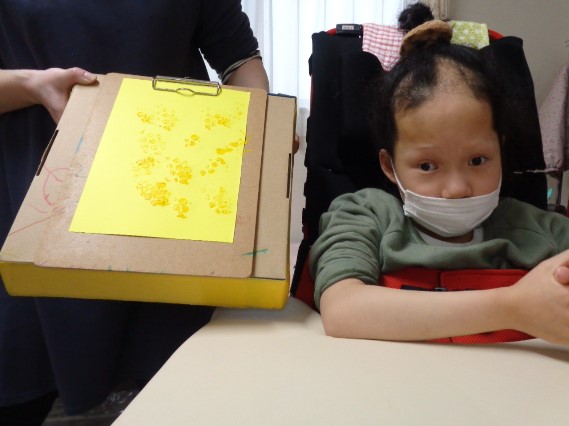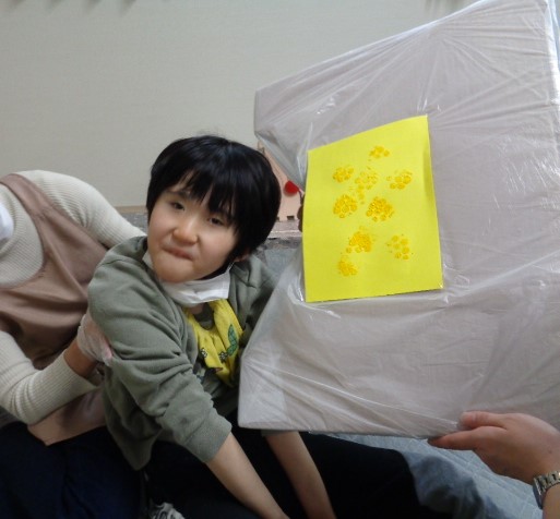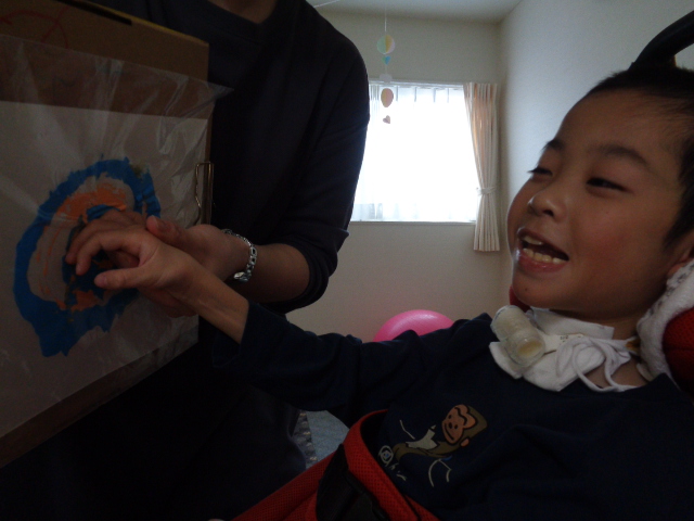 皆さん、絵の具をつぶす感触ににっこりでした![]()