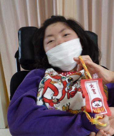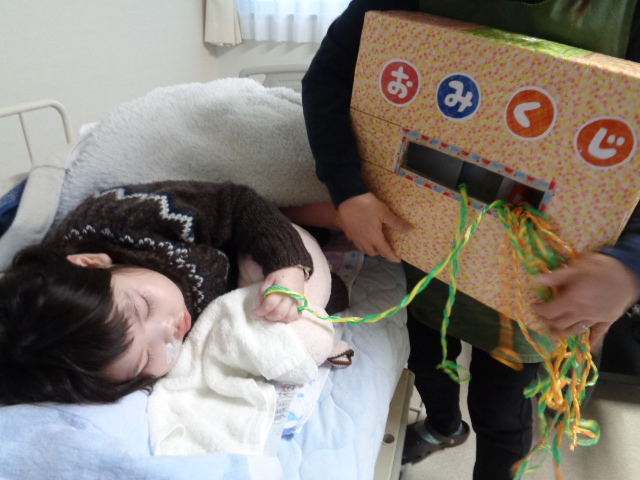おみくじも引きました。沢山ある紐から一つを選んで…。何が出るかワクワク。