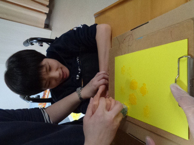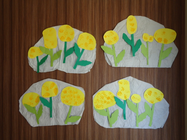 早く暖かい日が来ますように…と、願いをこめて『菜の花』の制作をしました。