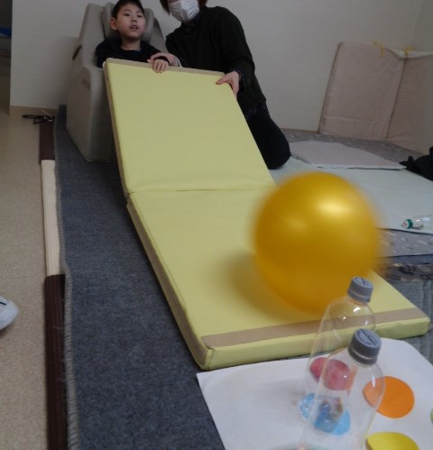 バネを使ってボール(ひなあられ)を飛ばして箱に入れます!