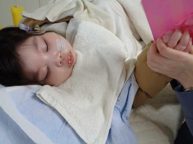 獅子舞の由来を聞いたあと、一人ずつ頭をがぶりと噛んでもらいました。